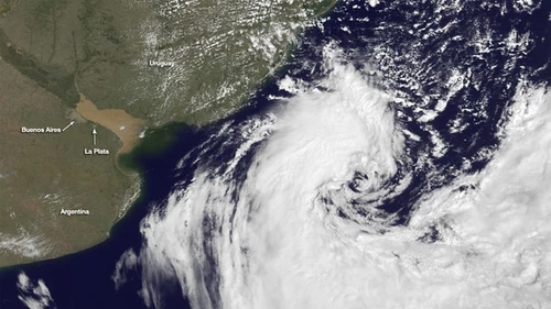 La National Oceanic and Atmospheric Administration (NOAA – Administración Nacional del Océano y la Atmósfera), la agencia científica del Departamento de Comercio de los Estados Unidos, publicó el día 5 de abril la primera imagen en alta definición de la tormenta que azotó a Buenos Aires el pasado 2 del corriente.