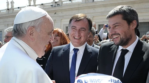 "Saludo al grupo del Club Atlético San Lorenzo de Almagro, de Buenos Aires", dijo el papa argentino Jorge Bergoglio, que es simpatizante de ese cuadro de fútbol, cuyos hinchas lo recibieron con una ovación, ante lo cual el pontífice agregó con una amplia sonrisa: "Esto es muy importante".
