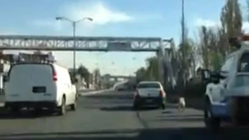 El autor de la grabación intercepta a la dueña del fiel animal para mostrarle que el intento de abandono está siendo grabado, pero la mujer no reacciona y, al contrario, aumenta la velocidad.
