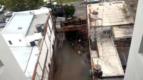 Hay riesgo de derrumbe por una obra que se inundó
