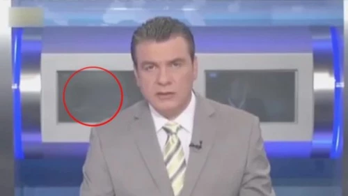 El presentador del noticiero no se dio cuenta de lo que estaba sucediendo, ya que los monitores estaban detrás de él.