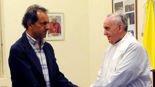 El gobernador bonaerense, Daniel Scioli, citó al papa Francisco en un acto frente a la Basílica de Luján y afirmó que "la unidad es superior a los conflictos".