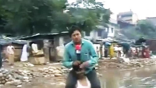En el marco de esta tragedia, Narayan Pargaien, uno de los periodistas enviados a cubrir las inundaciones por la televisión india, se convirtió en el protagonista involuntario de la situación. Pargaien retransmitió el desastre subido a “cococho”, o sea a los hombros de una de sus víctimas. El acto fue considerado de mal gusto por los televidentes y duramente criticado en las redes sociales.