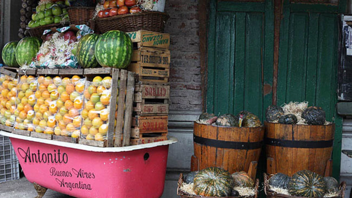 Miles de colores, como en una vidriera. Las verdulerías de Buenos Aires tienen como postulado fundamental presentar la mercadería como si se tratara de autos de colección o zapatos. El riego semipermanente o el exceso de cera aportan el brillo y la combinación de colores que sirven para dibujar arco iris o figuras geométricas. El secreto es deslumbrar, porque los argentinos compramos por medio de la vista. Así lo creen Marcelo y Adrián, dos de los encargados de venta en el puesto de la firma Dole, en la nave 5 del Mercado Central. Y decretaron: "Los argentinos no comen la fruta madura".