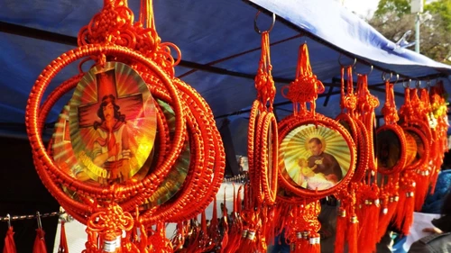 Muchos de los vendedores se dedican al circuito religioso. Siguen las fechas del calendario y se mueven de iglesia a iglesia donde haya fieles y celebraciones. Así el santo del día cobra protagonismo sobre el puesto para dejar su lugar en la próxima celebración a otra estampita.