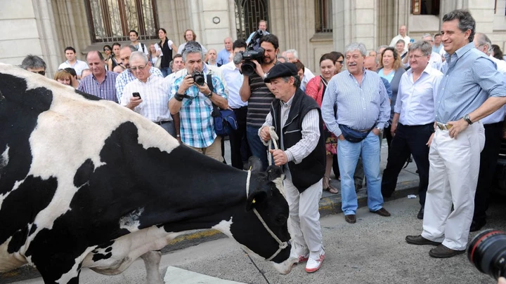 El ministro de Agricultura, Ganadería y Pesca de la Nación, Norberto Yauhar, señaló hoy que “lo que llamaron protesta tambera fue claramente un hecho político, eran 25 dirigentes y una vaca”. Con esas palabras definió hoy el ministro la “escasa” convocatoria en la puerta de la cartera agropecuaria, con sede en Paseo Colón 922. Y remarcó: “Solo eran dirigentes dejando en claro que son opositores y que buscan un minuto más en los medios”.