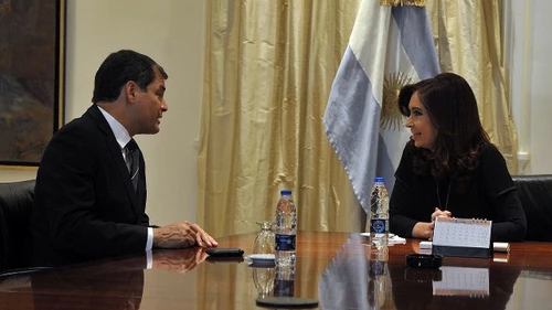 La presidenta Cristina Fernández de Kirchner recibió en la noche del jueves su par de Ecuador, Rafael Correa, en la residencia de Olivos.