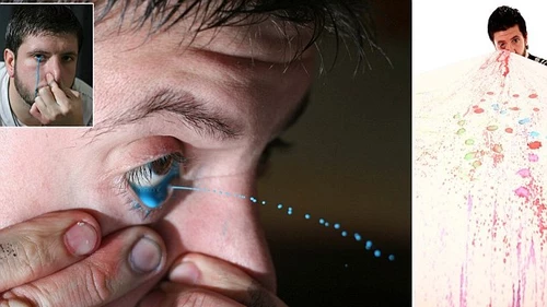¿De qué se trata? Según contó el joven de 27 años, para lanzar pintura con el ojo aprovecha una variación de su fosa nasal, la cual le permite introducir pintura por la misma y ser expulsada como lágrimas de sus ojos.