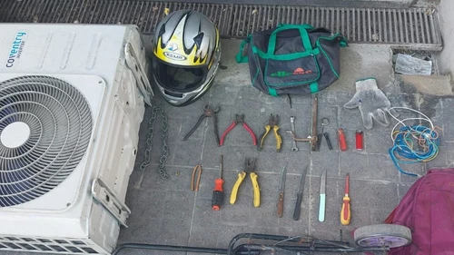 Luego de identificarlos fueron requisados en presencia de testigos encontrando entre sus pertenencias varias herramientas y un casco de moto.