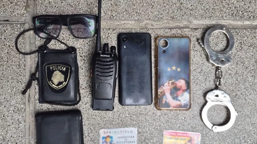 Tras un cacheo en presencia de testigos, los agentes le secuestraron al falso policía credenciales apócrifas, equipos de comunicación, teléfonos celulares y esposas.