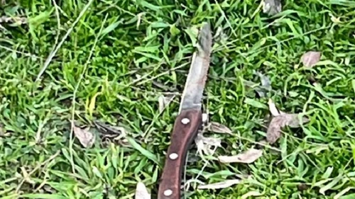 "Estábamos recorriendo el parque, viendo si encontrábamos algo y nos encontramos con este cuchillo de la conocida marca brasileña (Tramontina)", dijo en medio de la transmisión en vivo el periodista del canal C5N Diego Lewen, a las 7.45 de este jueves, mientras las cámaras exhibían el arma con manchas que parecían ser de sangre.