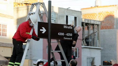 Florentina Gómez Miranda, Claudia Falcone, María Elena Walsh, Marie Curie y Frida Kahlo son algunos de los nombres elegidos para bautizar las calles, senderos y plazoletas del barrio Papa Francisco, en el sur de la Ciudad de Buenos Aires. El nuevo barrio se ubica al lado de la villa 20 en un predio que había sido tomado en febrero de 2014 y donde tiempo después se construyeron edificios para mudar a varias familias del macizo habitacional.