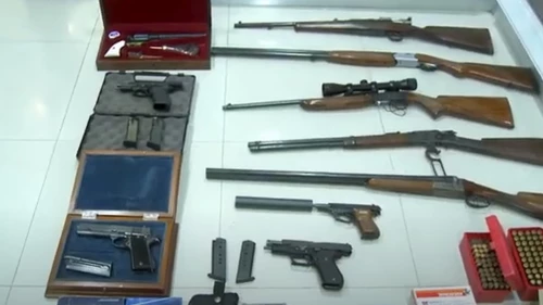 Al ingresar al departamento, los efectivos encontraron: una pistola calibre .22LR marca Bersa, una silenciador colocado en el arma mencionada, una pistola calibre .45, marca SigSauer, un revólver calibre .38SP tambor de cinco alveolos, marca Ruger SP101, una pistola calibre .40 marca Bersa modelo Thunder, una escopeta calibre .20 Pietro Beretts, una pistola calibre .22LR marca Ballester Molina, una escopeta con inscripción cal. 16, un recólver calibre .38 SP, una carabina calibre 22 LR con mira telescópica, una carabina con sistema cerrojo, un fusil Marca Marlin tipo Winchester calibre 44.40, un revólver Black Powder Onli calibre .44, 200 cartuchos de bala calibre 7.65, 53 municiones de escopeta calibre 12, 7 cartuchos de escopeta calibre 16, 1.050 municiones de calibre .22LR, 11 cartuchos de calibre .357 SP, 24 cartuchos calibre .38 SP, 27 cartuchos 9mm, 23 municiones calibre 40mm S&W, 20 cartuchos calibre 308, 8 credenciales de tenencia de armas de puño, una credencial de Legítimo Usuario a nombre del imputado vencida en 1996, una máquina de recarga sin tenencia, pólvora, vainas, perdigones y demás elementos para la recarga de cartuchos.