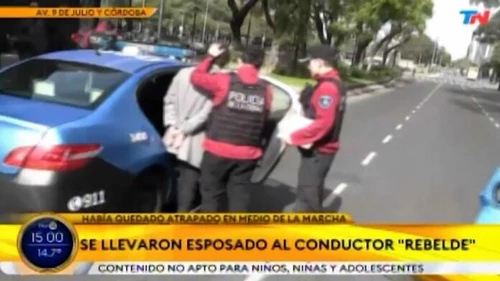 La detención ocurrió en el cruce de la avenida Córdoba y Cerrito, cuando efectivos de la policía porteña cortaban el tránsito sobre la avenida 9 de Julio debido al reclamo de las organizaciones sociales. Según informó la Policía de la Ciudad, en ese momento, un conductor de 33 años, a bordo de un Chevrolet Sonic, se negó a desviar por las calles laterales a la avenida e intentó cruzar.