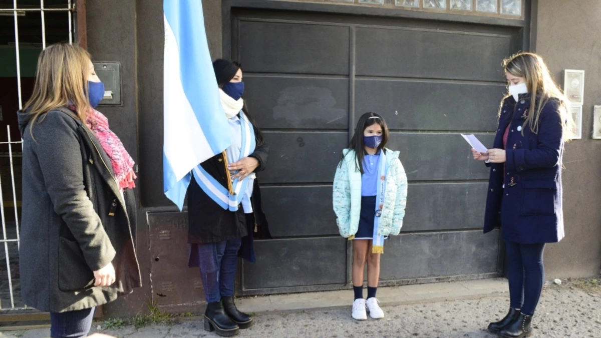 "Este es un Día de la Bandera diferente. Este año, debido al protocolo por pandemia que hay que respetar, lo hicimos así, porque hay que cuidar a los chicos, y también tenemos que cuidarnos entre todos", dijo Leo Nardini, el intendente municipal luego de la jornada. Con motivo de cumplir con los protocolos de cuidado, por el contexto de pandemia del COVID-19, el acto de lealtad al símbolo patrio, se tomó a un alumno de cada colegio, en el establecimiento educativo al que asiste, o mismo en la casa del alumno.