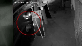 Las imágenes captadas por la cámara ubicada en una verdulería de la calle Belgrano y 426 muestran a una joven de 22 años en el momento en que se tira de un auto Citroen C4. En unos pocos segundos cargados de tensión, se la puede observar cómo patea la puerta del vehículo desesperada varias veces antes de caer finalmente sobre el asfalto.