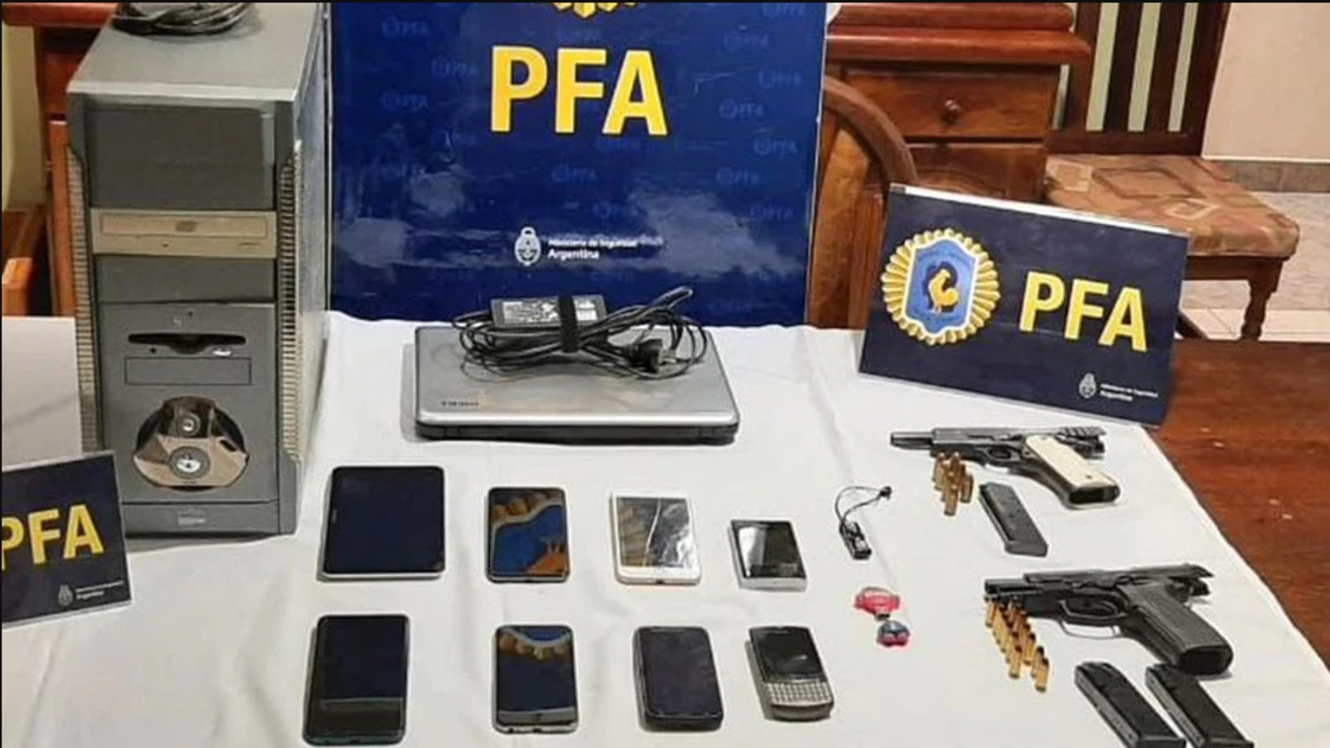 La PFA diez CPU, veinte díscos rigidos, tres rígidos externos, cámaras filmadoras, pendrives, notebooks y 40 celulares. La Bonaerense halló 63 teléfonos y 110 discos rígidos, además de 29 notebooks y diez otros CPU, con más de 90 tarjetas de memoria.