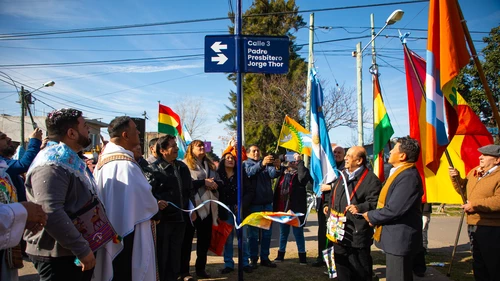 Se impuso el nombre Presbítero Juan Domingo Thor a la calle 3 entre Av. Vergara y Av. Dardo Rocha y el acto se desarrolló en el marco de los festejos por el 197° aniversario del Estado Plurinacional de Bolivia, que incluyó la celebración a la Virgen de Copacabana por parte de la colectividad boliviana. El intendente de Berazategui, Juan José Mussi, participó de las actividades realizadas el sábado pasado.
