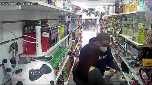 El hecho quedó registrado en las cámaras de seguridad del comercio y se puede oír parte de las amenazas del delincuente: "Dame la plata porque te doy una puñalada. Dame todo", le dijo.
