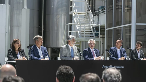 "Estamos en Almirante Brown visitando Danone y presentando un nuevo producto realizado en conjunto con tecnología del CONICET porque estamos convencidos que el desarrollo del conocimiento y tecnología garantiza la prosperidad de las sociedades", sostuvo Alberto Fernández durante el acto, quien subrayó la importancia de "seguir trabajando en equipo para tener el país que nos merecemos".
