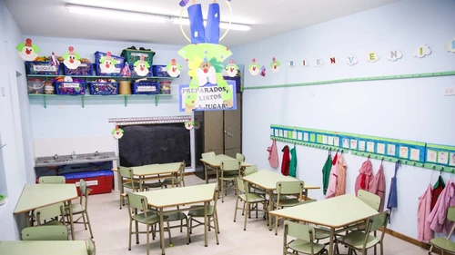 Este nuevo edificio para el jardín de infantes, que anteriormente funcionaba en el Club Mitre, cuenta con tres aulas, cocina, dirección, patio descubierto para usos múltiples y un comedor compartido con el jardín maternal aledaño