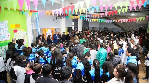 Luego el Intendente y la jefa de Gabinete fueron parte del acto que dio inicio a la jornada completa en la Escuela Primaria Nº 33, de Dock Sud. Allí, 320 niños y niñas asistirán en ambos turnos, gracias al trabajo realizado de manera articulada entre la Municipalidad de Avellaneda y el Gobierno de la Provincia de Buenos Aires.