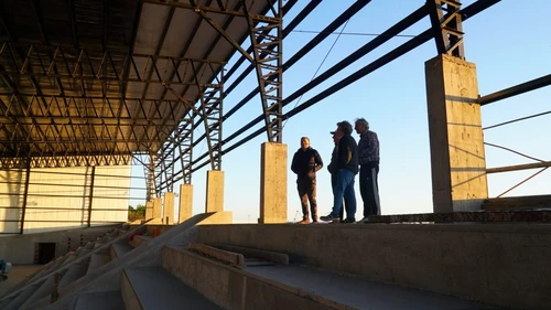 "Recorriendo las obras del polideportivo municipal, donde actualmente se está realizando el cerramiento del microestadio. Se trata de una obra única, muy importante para todo Esteban Echeverría, que va a permitir congregar a una gran cantidad de niñas, niños y jóvenes", expresó el intendente Fernando Gray.