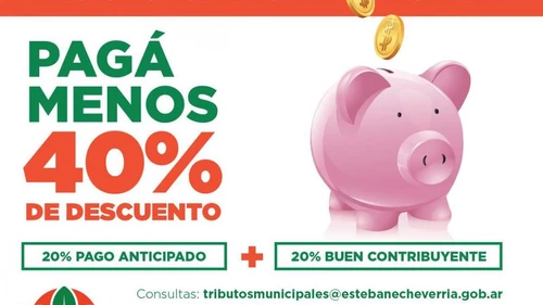 El Municipio local brinda un importante beneficio que alcanza el 40% de descuento para las vecinas y los vecinos que efectúen por anticipado el pago anual del Tributo Municipal por la Propiedad y no tengan deuda al 31 de diciembre de 2023.