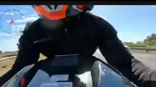 Un motociclista que circulaba por la autopista advirtió que desde otra moto le apuntaron con un arma de fuego aceleró para escapar: llegó a 279 kilómetros por hora, según registró la cámara de la moto.