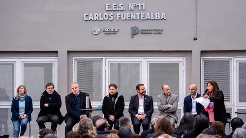 El gobernador de la provincia de Buenos Aires, Axel Kicillof, encabezó este miércoles el acto de inauguración del nuevo edificio de la Escuela Secundaria N° 11 "Carlos Fuentealba" de la localidad de Garín, en Escobar.