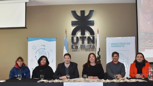 Del acto participaron la referente del Programa Berisso Recicla, Martina Drkos, el Decano de la UTN Ing. Luis Ricci; la subsecretaria de Residuos Sólidos Urbanos (RSU) y Economía Circular del Ministerio de Ambiente, Jackie Flores; el director de RSU, Ramiro Vilariño; junto a la Cooperativa Recicladores Unidos.