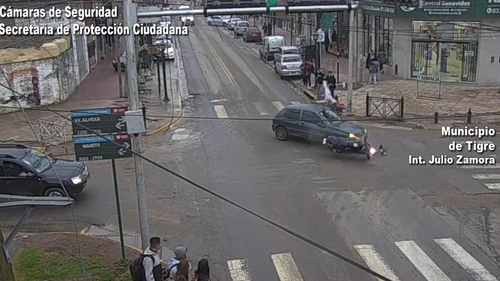 Un impactante accidente de tránsito tuvo lugar en la localidad de Benavídez, partido de Tigre, luego de que un auto chocara de lleno contra una moto en la intersección de Av. Alvear y Marabotto.