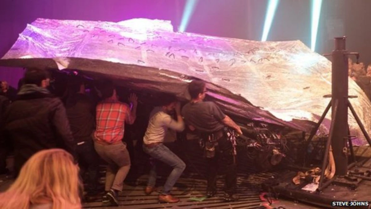 "El velo colapsó sobre los técnicos y miembros del público que estaban debajo", relató Steve Johns, de 68 años de edad, a la BBC británica. Durante los shows del conjunto argentino, los actores suelen moverse por el techo parados sobre una especie de membrana que los separa de las cabezas de la audiencia.