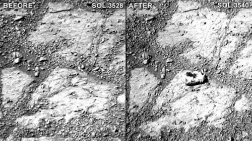 Ahora la misión de los científicos pasó a ser intentar desvelar cómo hizo esa piedra para llegar ahí. "Tiene aproximadamente el tamaño de una rosquilla y fue una sorpresa total. Fue como 'esperé un segundo...eso no estaba antes ahí...no puede estar bien...¡oh Dios mio! ¡No estaba antes!'", explicó Squires.