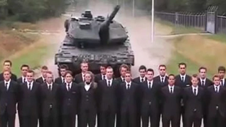 El ejército holandés realizo una prueba de frenado con su coche de combate más moderno, el Leopard 2. Sin embargo, para darle más emoción, optaron por poner una fila de voluntarios delante de la zona de frenado.