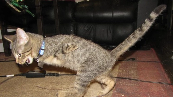 Un pequeño gato, llamado Mercury, tiene sólo dos patas luego de perder sus extremidades delanteras en un accidente. Sin embargo, no es ningún impedimento para el felino, que salta, corre y hasta pelea.