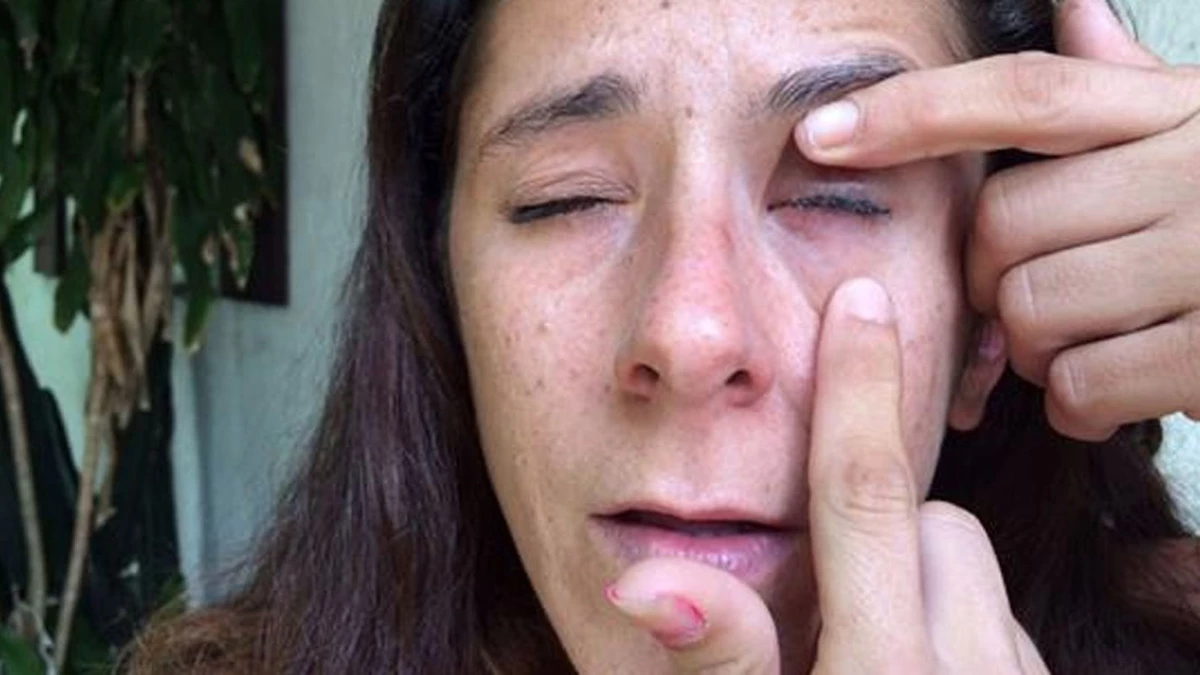 Al regresar (ella apenas podía observar sus manos) en lugar de sentir alivio sintió un gran dolor, ahí se dio cuenta que quiso aliviarse con pegamento para uñas. Su ojo izquierdo quedó sellado de inmediato.