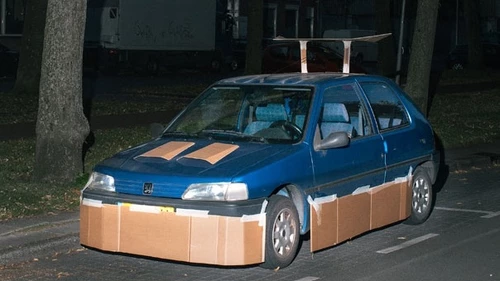 El fotógrafo Max Siedentopf merodea las calles de Amsterdan por la madrugada tuneando los coches de extraños con cartón. “Las cosas ordinarias como los coches se están personalizando cada vez menos, mientras que podría ser una buena forma de auto-expresión. Me gusta pensar que le estoy haciendo un favor a la gente, dándoles un auto deportivo hecho a medida”, dijo.