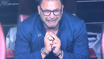 Sin embargo, el entrenador permaneció sentado en el banco de suplentes y, con un rosario entre sus manos, rompió en llanto.