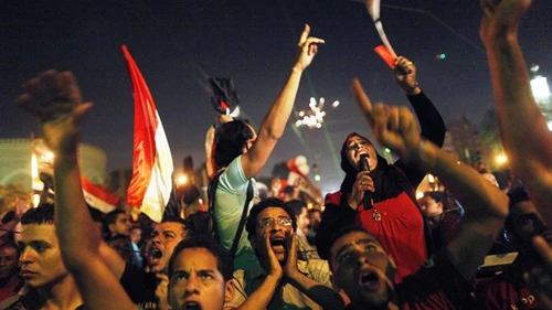 Sobre algunos de los tanques se podía ver sentados a defensores de la nueva situación, celebrando con banderas egipcias.