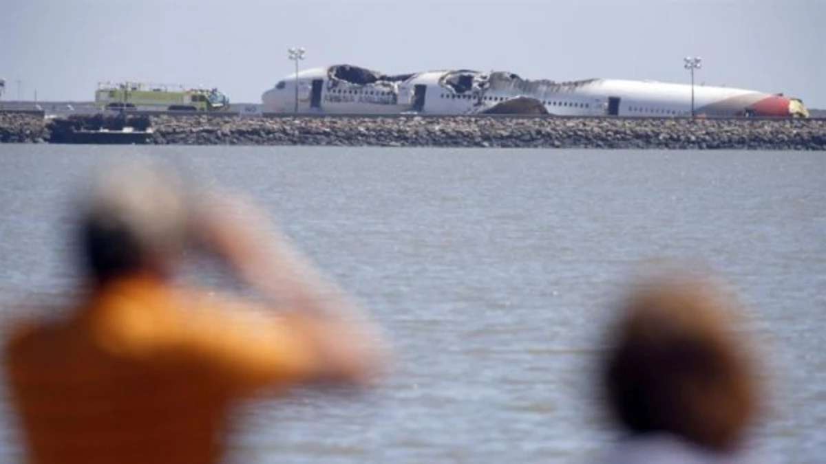 El Boeing 777, con 291 pasajeros y 16 tripulantes a bordo llegaba en el vuelo 214 originado en Shanghai (China) y con escala en Seúl (Corea del Sur), cuando aparentemente golpeó una barrera en la cabeza de la pista 28 del aeropuerto, unos 20 kilómetros al sur de San Francisco.
