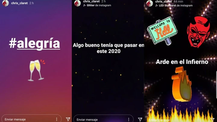 "Alegría" escribió en una de las tantas historias de Instagram que le dedicó a la muerte del ídolo popular. En otras escribió frases como "Algo bueno tenía que pasar en 2020", "Welcome to Hell" y "Arde el infierno".