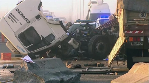 Una persona murió y otras tres resultaron heridas tras el choque entre dos camiones, dos autos y un micro en la Autopista Panamericana, ruta 9 Km. 58 a la altura del partido bonaerense de Escobar. Hay dos carriles cortados mano a Capital, y otros dos en sentido a Zárate y Rosario.