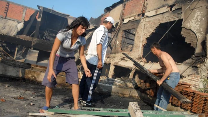 Las llamas se iniciaron poco antes de las cinco en la fábrica de muebles y local de venta de muebles y electrodomésticos ubicada en Camino Negro y Baradero, en Villa Fiorito.