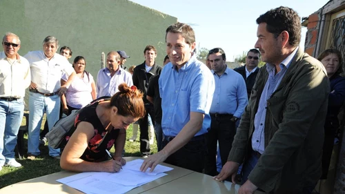 El Intendente de Esteban Echeverría, Fernando Gray, visitó el Barrio La Victoria para la firma de los primeros Boletos de Compraventa correspondientes al Programa de Loteo Social.