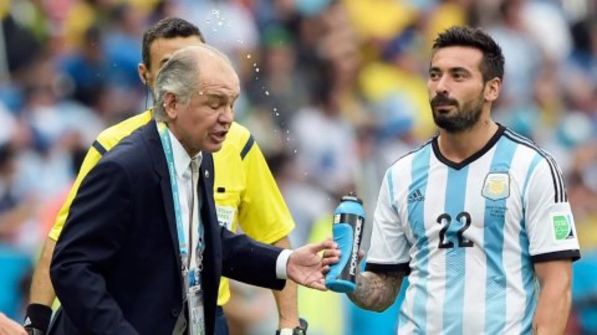 El entrenador del seleccionado argentino de fútbol, Alejandro Sabella, dijo hoy que tomó "como una muestra de cariño" el episodio que vivió en el último partido con Ezequiel Lavezzi, quien le tiró agua cuando le estaba dando una indicación.