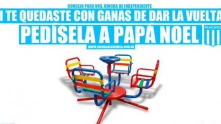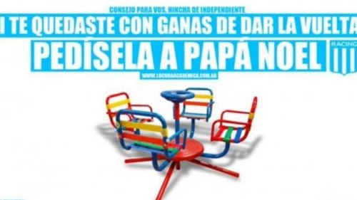 Una de las publicaciones muestra una calesita para niños con la leyenda "Si te quedaste con ganas de dar la vuelta pedísela a Papá Noel", con el agregado: "Consejo para los hinchas de Independiente".