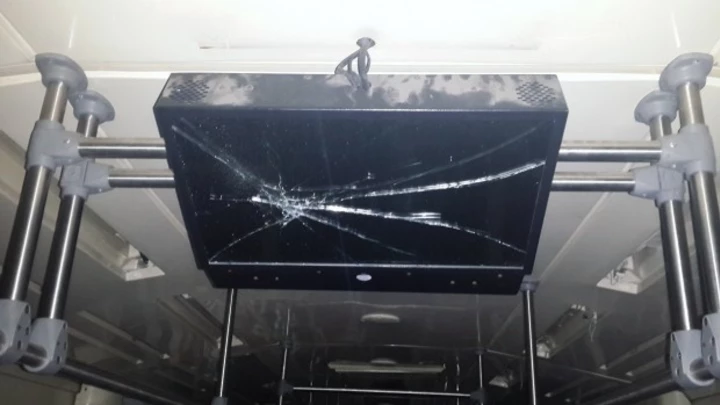 “Entre otras cosas, este grupo de vándalos rompió 19 ventanillas laterales, 20 artefactos de iluminación, 3 indicadores de destinos; 2 pantallas de LED, destruyeron 4 asientos y dañaron otros 15; y se robaron 40 metros de mangueras, además de los daños al parabrisas de la formación china 0km que circulaba en sentido contrario y fue apedreada”, detalló el Ministro.