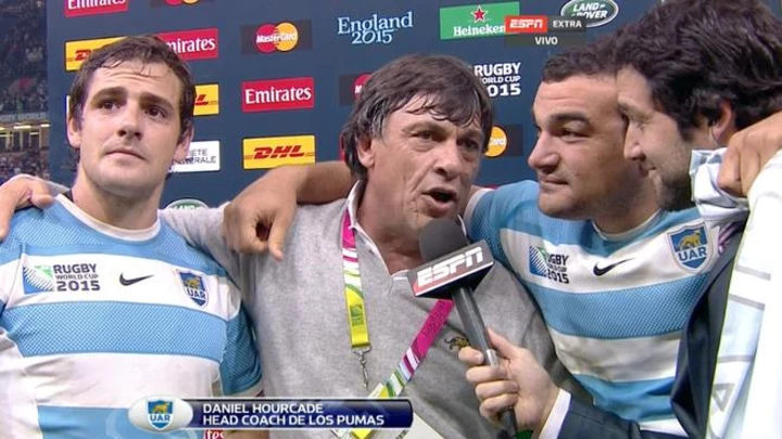 El entrenador del seleccionado argentino de Rugby, Daniel Hourcade, rompió en llanto al dedicarle a su mamá la victoria obtenida hoy ante Irlanda, en el marco del Mundial de Rugby Inglaterra 2015.