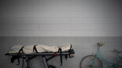 Un muerto de COVID-19 junto a una bicicleta en Barcelona, España. Tristes postales que deja la pandemia. (Felipe Dana)